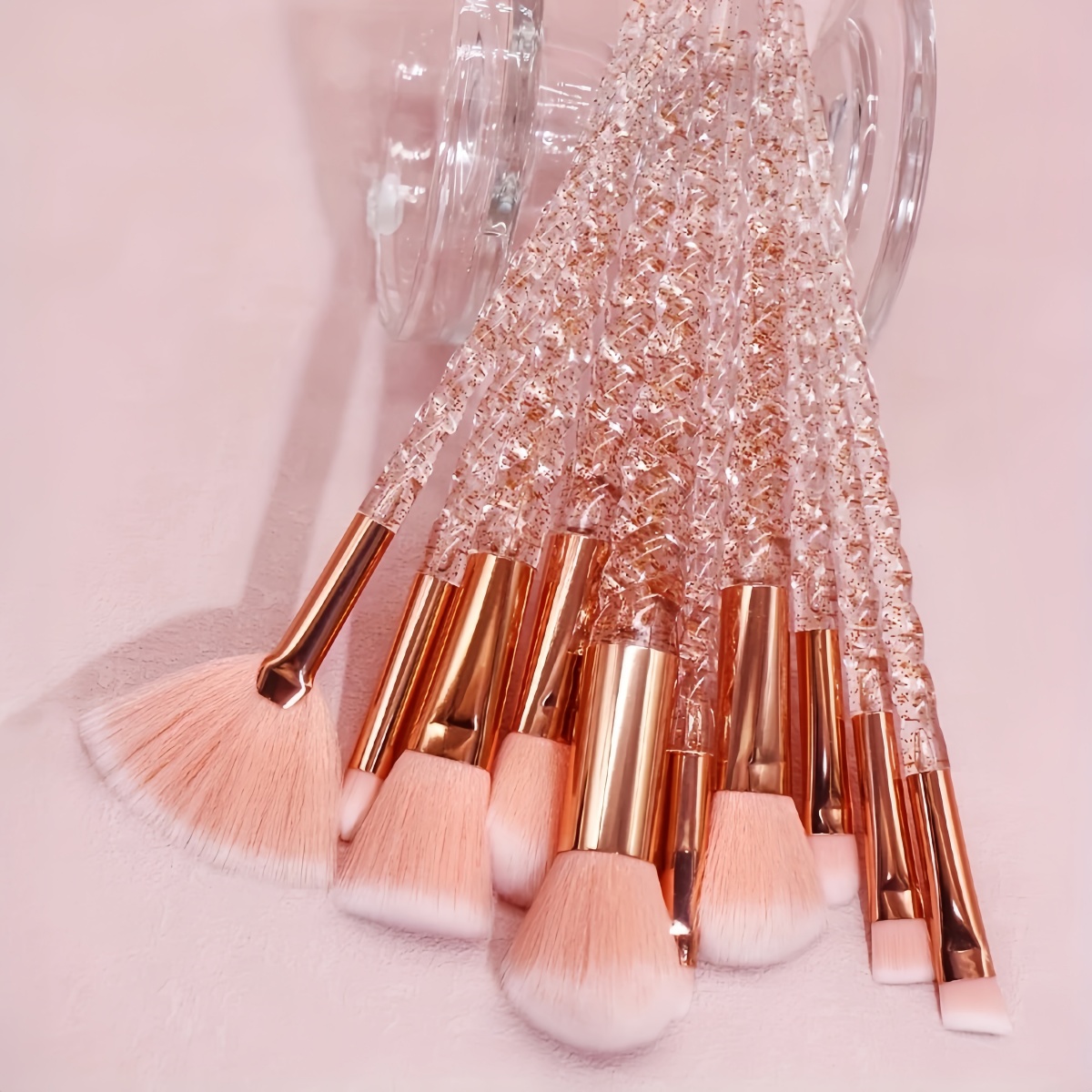Eye – catching Appearance: The spiral crystal brush handles paired with pink – white gradient brush hairs create a unicorn – like dreamy feeling, highly recognizable among beauty tools, catering to the girly heart and fashion aesthetics. It is not only a makeup tool but also a decorative item for the beauty area on the desktop.