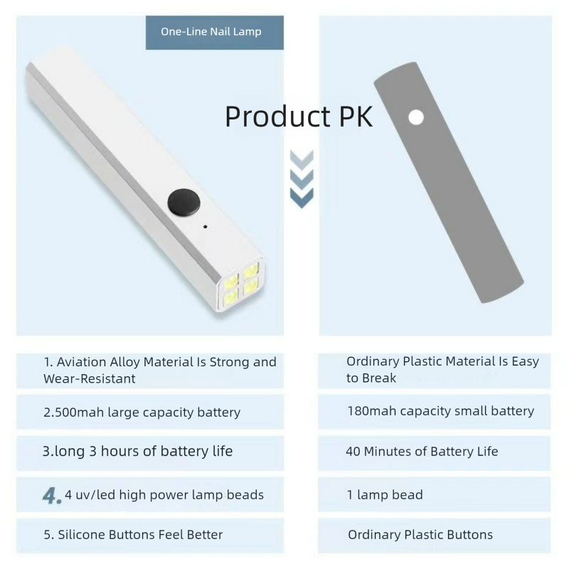 • This compact LED nail lamp is ultra-portable and lightweight, featuring a sleek minimalist design, which effortlessly fits into your backpack, allowing you to carry it with ease wherever you go.